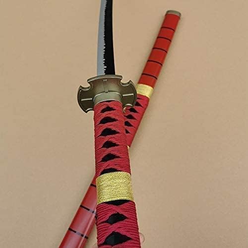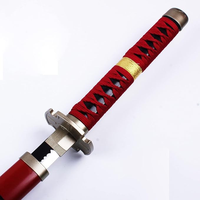 Sandai Kitetsu, one of the iconic swords wielded by Roronoa Zoro in the anime and manga series One Piece. Known as a "cursed blade," it is characterized by its deep red scabbard (saya) and matching red hilt (tsuka) with black cross-wrapping.