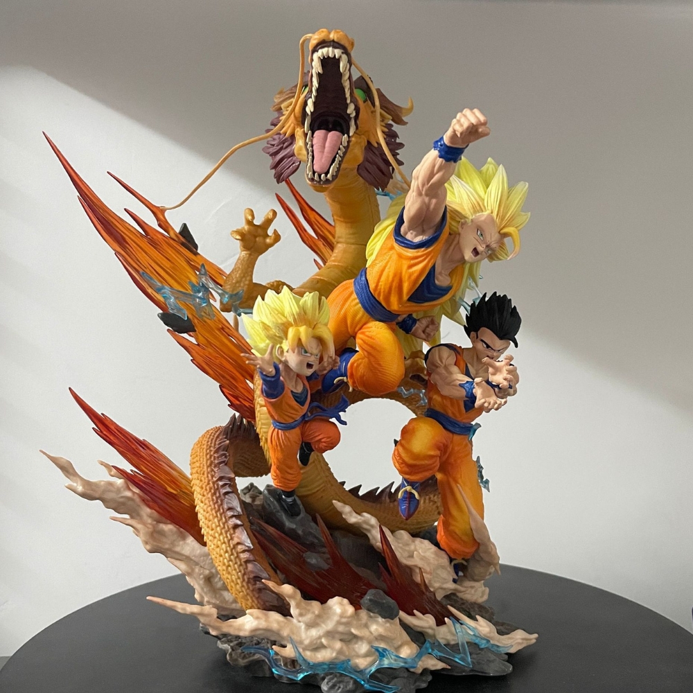 Three Head Sculpts: Super Saiyan Blue, silver/gray (often associated with Ultra Instinct or a custom form), and a third alternate style.