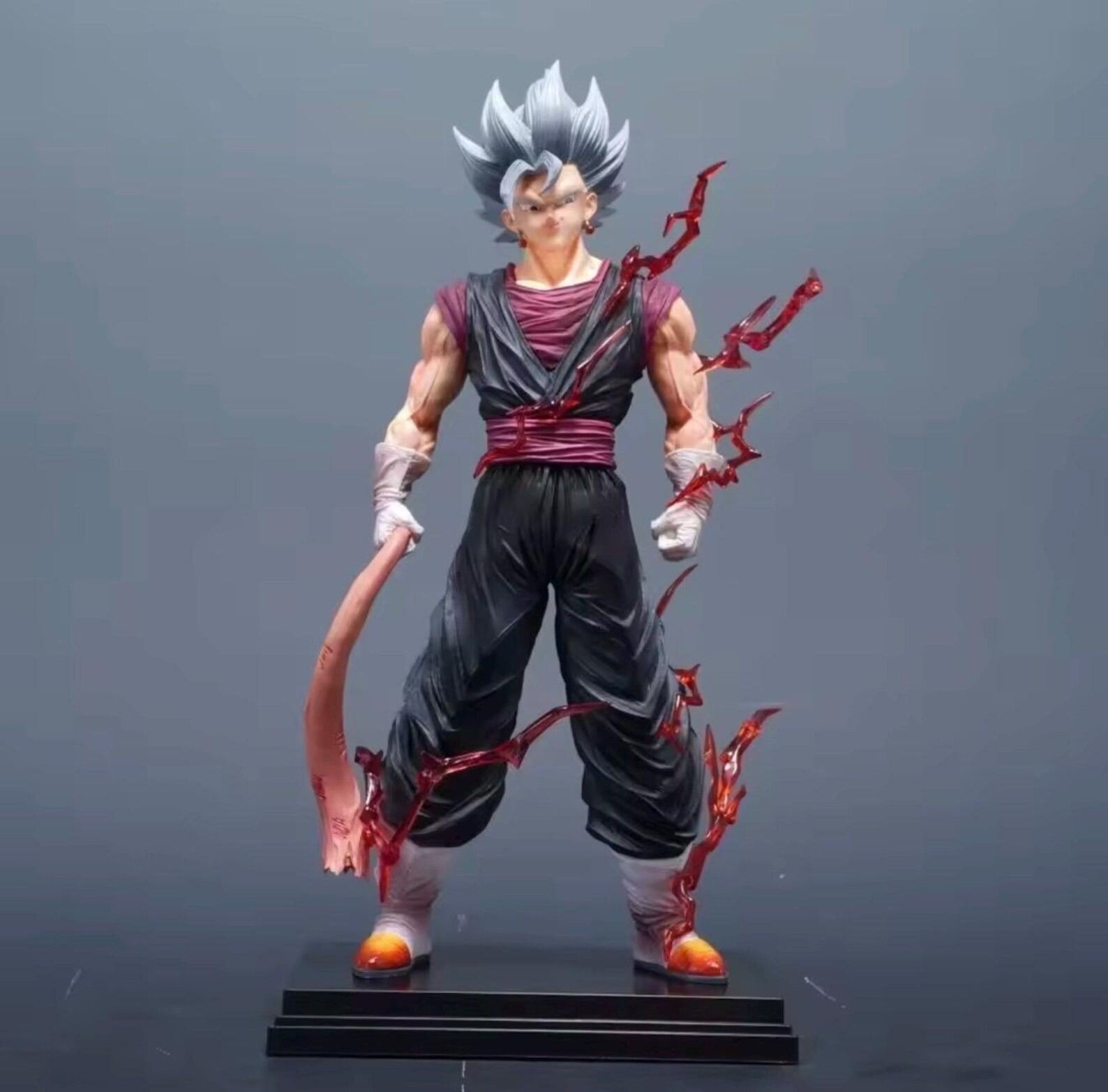 Design: Features the "Vegito Black" color scheme with a dark charcoal/black gi and a deep wine-colored undershirt